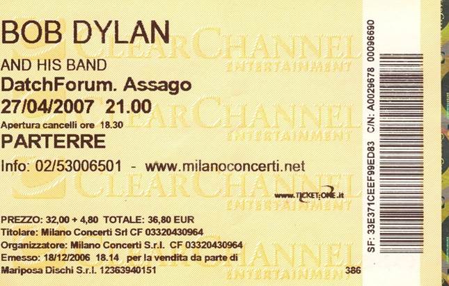 of The Never-Ending Tour. Concert # 25 of the 2007 Europe Spring Tour. 2007
