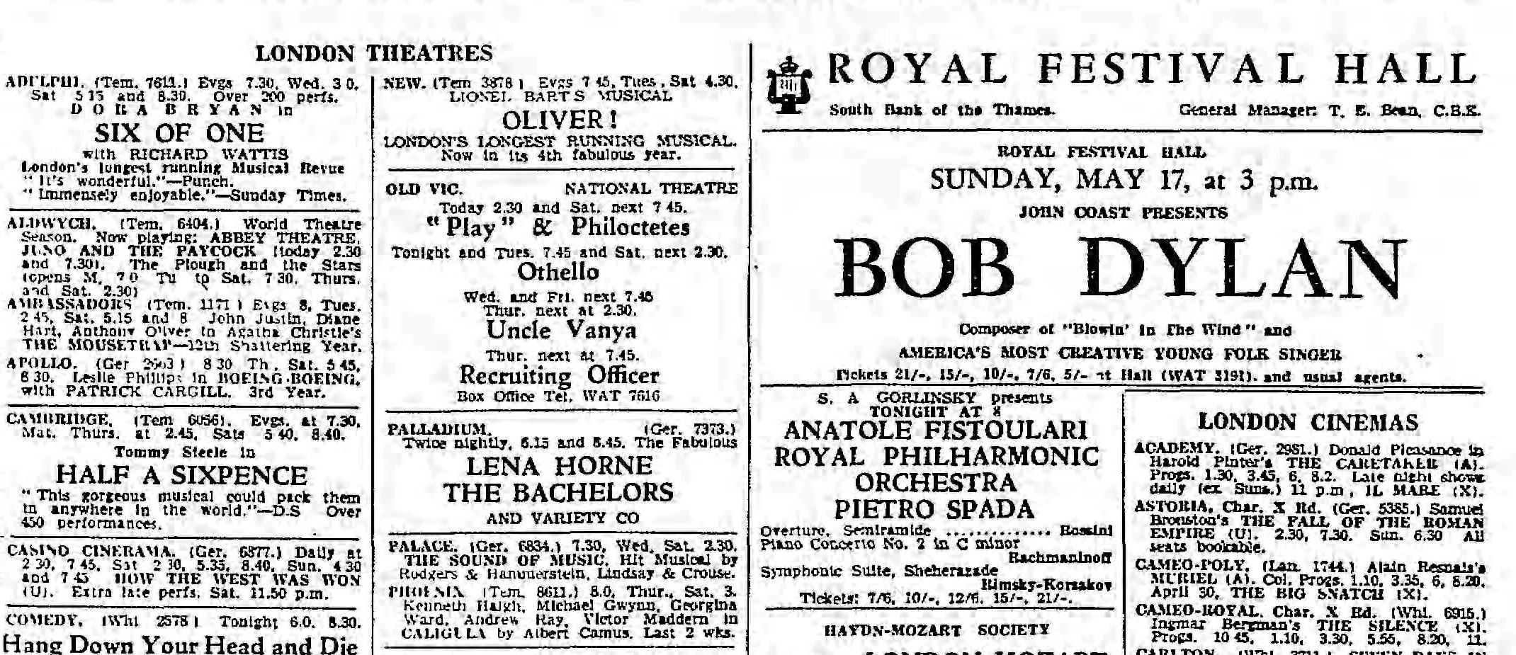 May 17, 1964 London, England Royal Festival Hall Concert